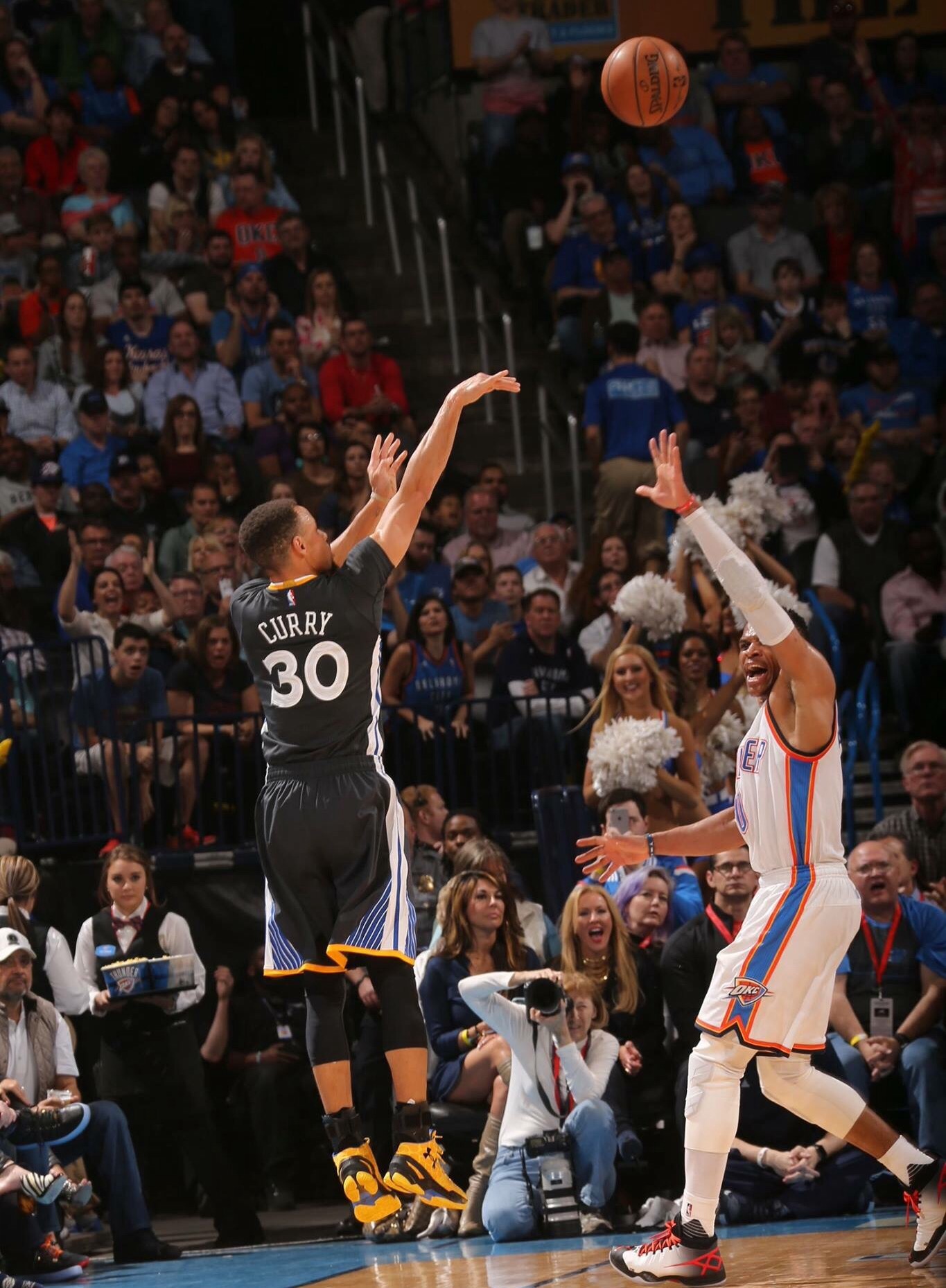 Just last week, the Warriors played the Oklahoma City Thunder in what was maybe the best NBA game of the 2016 season, so far. Curry made 12-16 three point shots and finished the game in overtime with the game-winning shot from 35 feet at the buzzer for the win (you can see highlights here). WATCH http://espn.go.com/nba/story/_/id/14863271/nba-stephen-curry-record-night-soothes-warriors-rough-edges