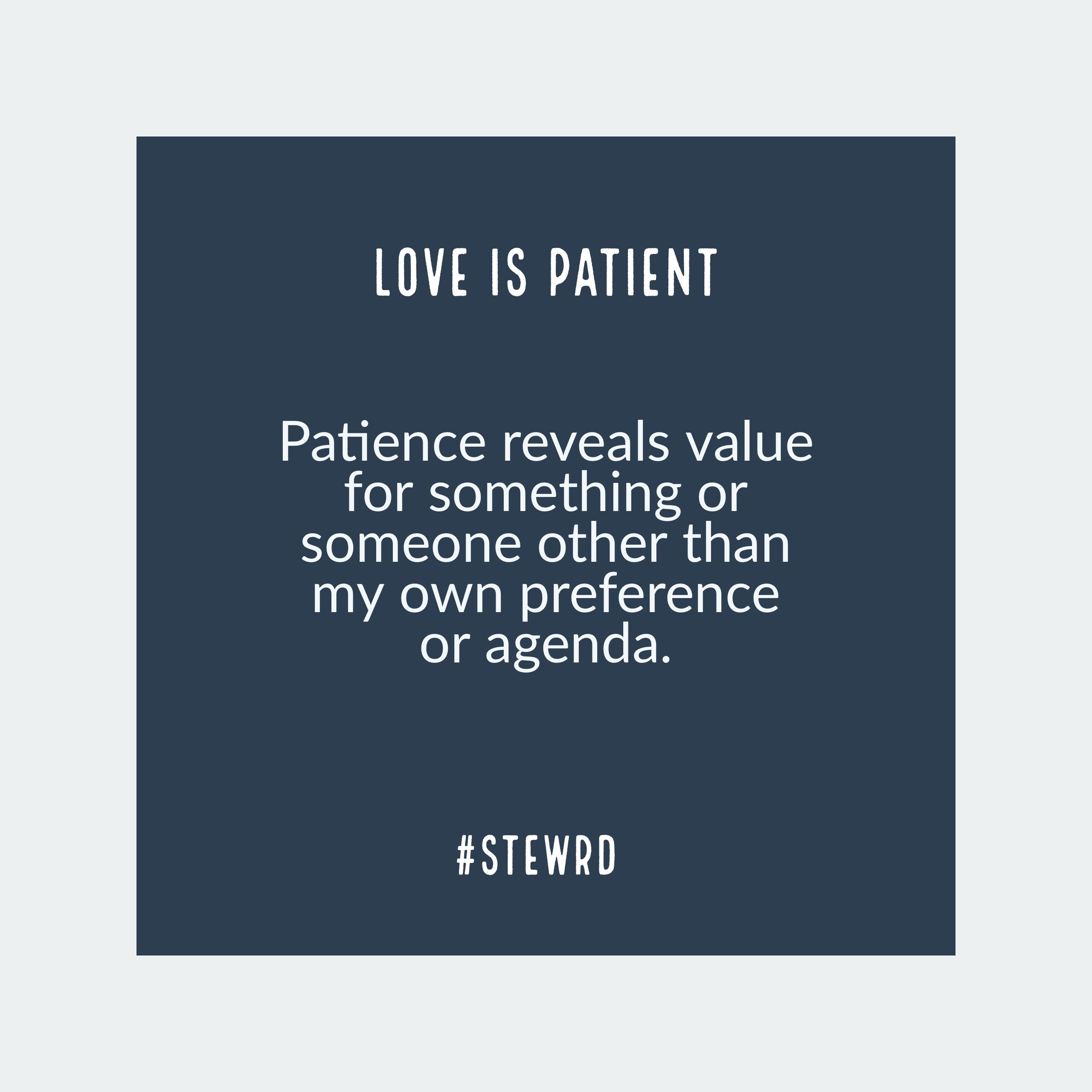 Patience Stew Rd.June 29, 2017Picture Pages, Spiritual Growth, Your Life & Mine Post navigation PreviousNext Patience reveals value for something or someone other than my own preference or agenda. Share this:Tweet Click to email a link to a friend (Opens in new window) Email More Click to print (Opens in new window) Print Click to share on Reddit (Opens in new window) Reddit Share on TumblrPocketLike Loading... Related