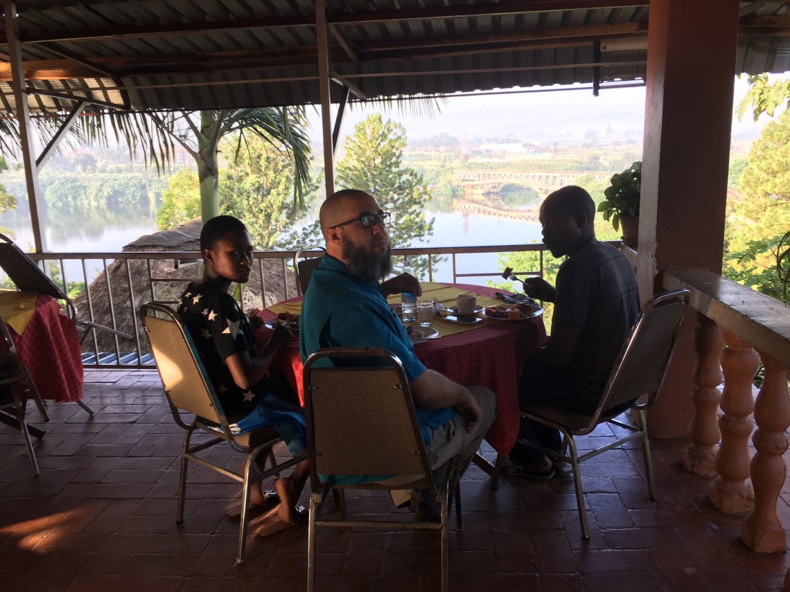 We picked up, Claire, a spiritual daughter to Jared and Kimberly , and drove to Jinja to drop off supplies to Redeemer House (orphanage Patrick partners with) and get ready for net outreach. Then we met Patrick’s sister and ran a couple errands before dinner at an interesting medieval looking restaurant. Retired the day at a hotel at the beginning of the Nile River (if you follow my Instagram, I actually thought Jared said it was at another location we flew over in the plane – that was incorrect).
